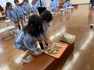 南幼稚園は、一枚一枚の羽根を作ることにしました!