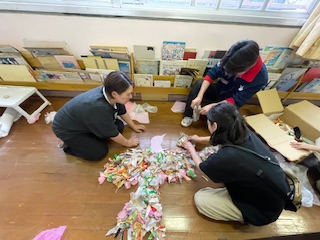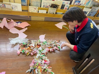 子どもたちが作った一枚一枚の羽根が一羽の鳥になりました!