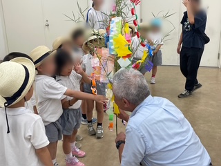 7月7日の七夕に向けて、いろいろな笹飾りをつくってきたすみれ組(5歳児)の子どもたち!