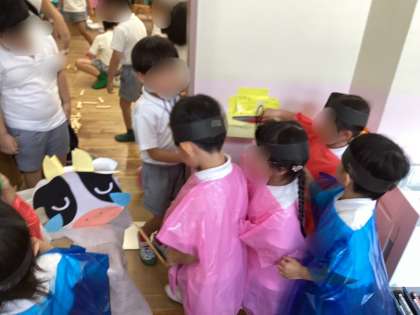 もも組さんにも、かわいい織姫様と彦星様がたくさんいましたよ。すみれ組さんでは、夏祭りの準備が行われていました。美味しそうなリンゴ飴がチラッと見えましたよ。「準備ができたら、また誘いに行くね!」だって!嬉しいね。真面目にお仕事してたらいいことがあるもんだね、と話しながら保育室へ。