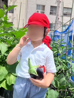 グラウンド畑の野菜の収穫(3歳児 ばら組)
