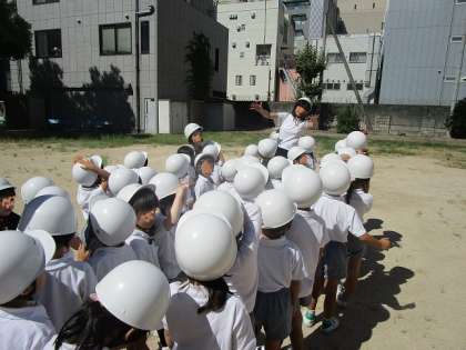 今日は、『大阪880万人の訓練』の日に合わせて、幼稚園でも地震や津波の避難訓練もしました。