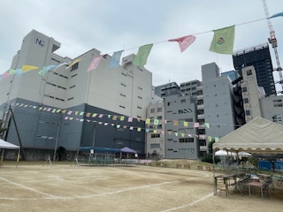 保育後、教職員で、万国旗をはったり、グラウンドを整備したりし、あとは、運動会当日を迎えるのみとなりました♪