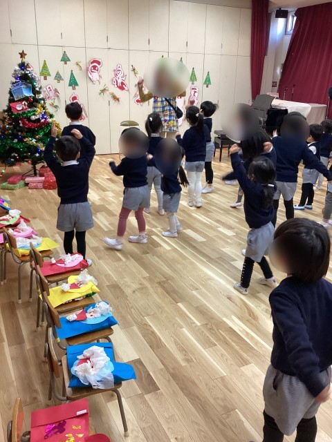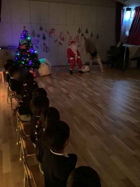 サンタさんからの手紙に「幼稚園に行くからね!」と書いてあったので、朝から子どもたちはワクワク、ソワソワ。