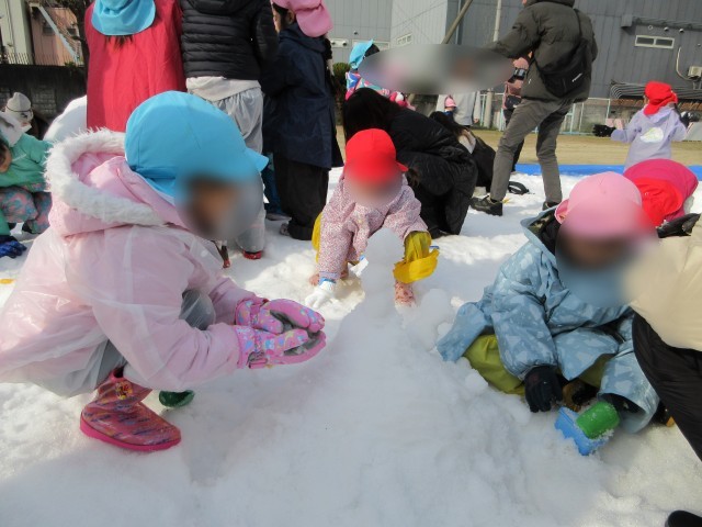 兵庫県からグラウンドに雪を運んでもらい、雪遊びを行いました。