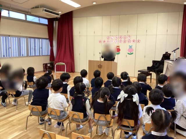 着任式、始業式では、新しい先生を迎えたり、園長先生に明日からの生活についてお話を聞いたりし、すみれ組、もも組の生活が楽しみになりました。