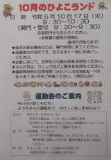 10月のひよこランドのお知らせです。 運動会では小さいお友達のかけっこも予定して...