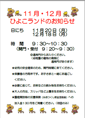 保護者の方が主催するバザーと幼稚園の制服リサイクルをしますので、お知らせします。...