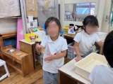 朝、保育室に入ると真っ先に飼育ケースに集まってきたすみれ組の子どもたち。朝の身支...