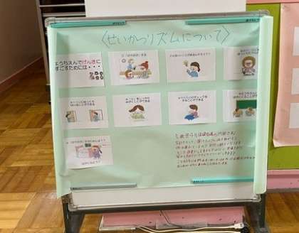 毎月、保健指導に関連する掲示物を、保健室あたりに掲示していますので、来園時ぜひご覧ください!