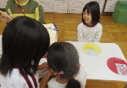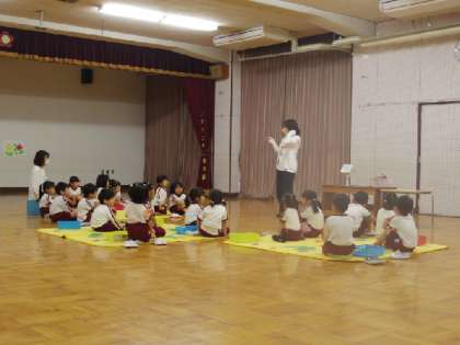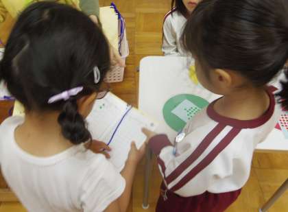 今日は、4歳児はな組の体重測定でした。4月の発育測定に続き、5歳児そら組が手伝ってくれました。