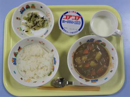 連休明け、給食も再開です。デザートのヨーグルトも大喜びでした。