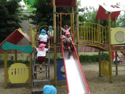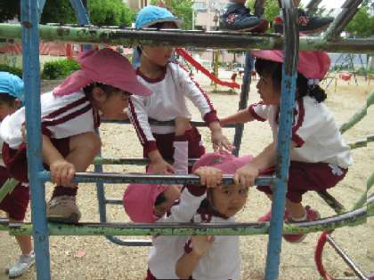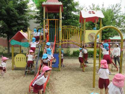 きまりを守り、固定遊具などで、安全に楽しく遊びました。友達と大勢で遊ぶと楽しいですね。