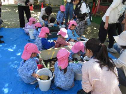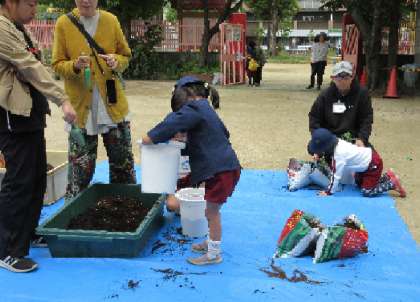 保護者の方と一緒に、夏野菜の苗や種を植えました。