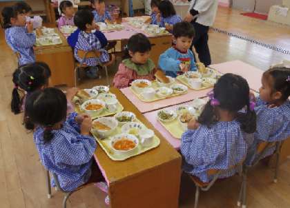 スナップえんどうやきぬさやなど、いろいろな豆を幼稚園で収穫してきた子どもたち。「さんどまめ」は、ちょっと違うけれど「お豆の仲間」。小さな豆が中に入っているのを見つけていました。