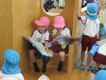 最後は図書館へ行き、好きな本を借りました。図書館にはたくさんの本があり、子どもたちは嬉しそうに本を手に取って夢中で読んでいました。借りた絵本は持ち帰っています。ご家庭で読んでみてくださいね。