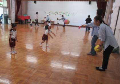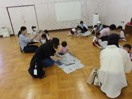 4歳児はな組は、保護者と一緒に、新聞ボールをつくりました。