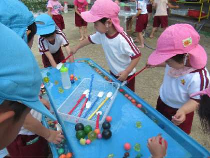 スーパーボールすくいも、「こんなにとれたよ」と友達と見せ合いながら、楽しそうです。