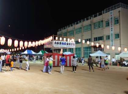 多くの方が、楽しそうに踊っておられ、幼稚園の子どもたちも、たくさん参加していました。やぐらの上で踊ったり、コイン落としやスーパーボールすくいなどのゲームでもらったおもちゃをうれしそうに見せてくれたり、おいしそうに焼きそばやフランクフルトを食べたりと、思い思いに楽しんでいました。