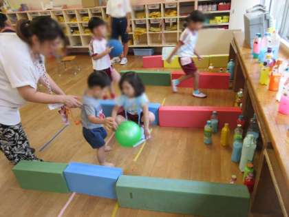 4歳児はな組は「ボール屋さん」5歳児そら組は「ボーリング屋さん」です。