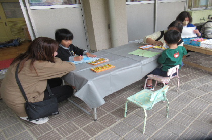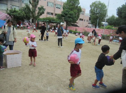 桜の葉が赤や黄に色づいてきた園庭に、未就園児園庭開放「ひよこ」のお友達が来てくれました。三輪車に乗ったり、砂遊びをしたり、手作りボールを投げたり、キャッチしたり、…テラスではパスで絵もかきました。今回は小さい赤ちゃんも来てくれて「可愛いね」「いないいないばあ!」「笑ってる〜!」と優しいまなざしで見守る園児の姿もありました。また遊びましょうね。「ひよこ」のお友達の絵も11月の作品展に掲示させていただきます。