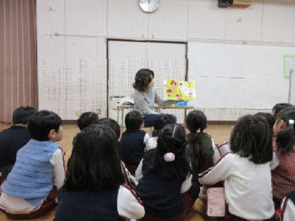 その後、絵本『じぶんのきもち ともだちのきもち』を読み、楽しいときや悔しいとき、困った時に、友達がいるのはいいことだねと話をしました。