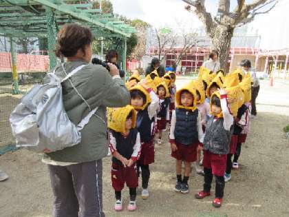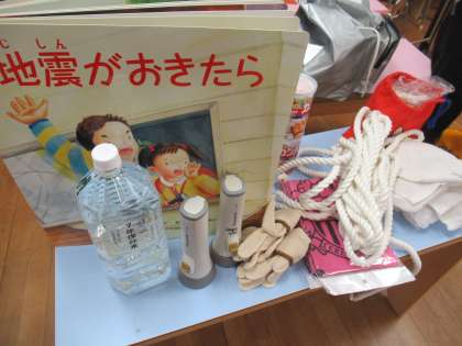 今日は1月17日です。30年前のこの日に起こったことを、ニュースなどで見たり、お家の人に話を聞いたりしている子どもも多く、地震や津波が起こった際にどのように行動したらよいかを、絵本を見るなどして確認しました。幼稚園にある非常持ち出し袋に、どんなものが入っているかも、一緒に見ました。「うちにもある!」「ぼくんちにはないよ」などと言っていたので、お家の人と相談しながら用意してみるのもいいね、と話をしました。