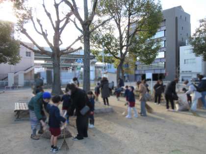 お家の方と掃除をして子どもたちは嬉しそうで、終わってからは「公園が綺麗になって気持ちよかったね」と満足そうでした。
