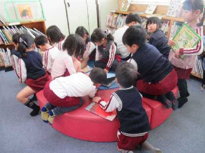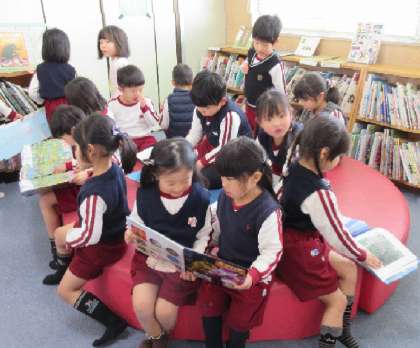 絵本が大好きな子どもたちは大喜びで、幼稚園よりたくさんある本の中から、いろんなジャンルの本を選んで、楽しみました。自分の好きな本を選ぶことができる姿にも成長を感じます。