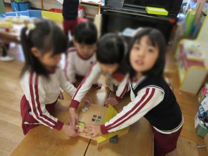 子どもたちに見せると「わあ!くじょうようちえんのいえや!」「たのしそう〜」と大喜び!