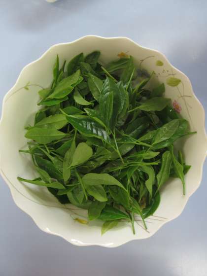 優しく揉んでいると、どんどん、かさが減り、段々と濃い色になり、香りも濃くなってきました。最後は少し炒って出来上がり!お茶のいい香りでいっぱいになりました。