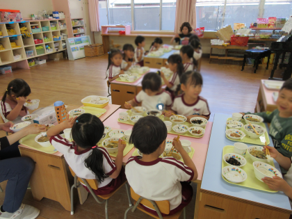 魚料理が人気で、よく食べていました。ひじきのいためにをごはんの上に乗せている子どももいました。おいしかったね。ごちそうさまでした。