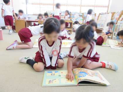 一緒に絵本を見たり、その本を元の場所に戻して新しい絵本を探したり、ゆっくりと自分の読めるひらがなを読んで、読み聞かせている年長児もいましたよ。
