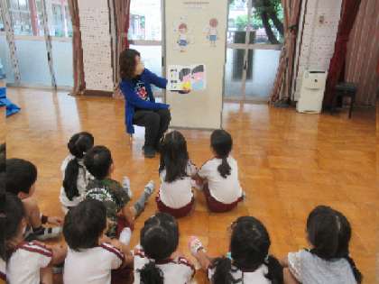 体の部位クイズの後、絵本『うみとりくのからだのはなし』を使用し、プライベートパーツの大切さや、自分と相手の体を大切すること(見せない/見ない・触らせない/触らない)を知らせました。