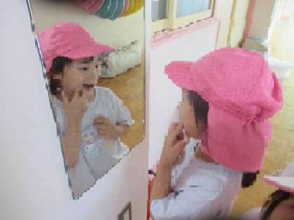指導後、6ちゃんが生えているか聞きに来て鏡の前で確認する子どもたちでした!