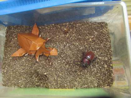 今日、覗いてみると…「カブトムシだ!!」