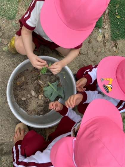 虫探しをする子どもたちや砂場で砂遊びをする子どもたちなど、それぞれが好きな遊びを見つけて楽しんでいました。中には、保育室で虫の絵本を見て、虫になって遊ぶ子どもたちもいました!