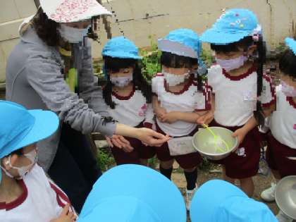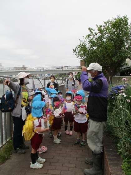 帰りには、スイトピーやヤグルマギクを一人ずつもらい、嬉しそうに持って帰りました。