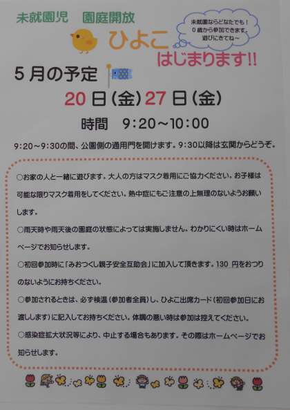 未就園児 園庭開放ひよこ 始まります!!