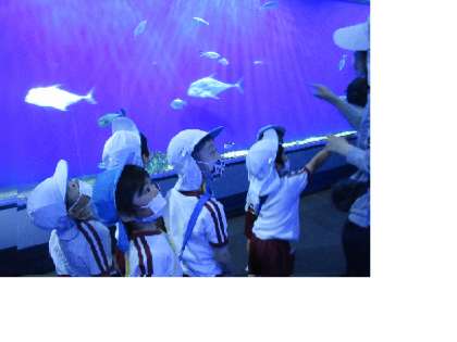 5歳児も4歳児も、初めての電車での園外保育です。5歳児のリードで、安全に電車に乗ることができました。