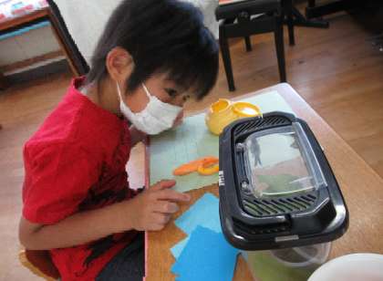 七夕飾りをつくっている時、「チョウチョがうまれた!」と、大興奮!