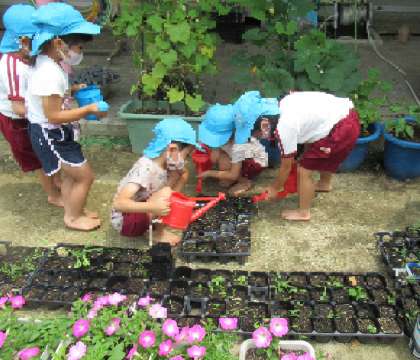 発見を喜ぶ気持ち、不思議に思う気持ち、自分なりに考えること、草花を慈しむ心、など、経験や友達とのやり取りを通して、感じられることを大切にしたいと思います。