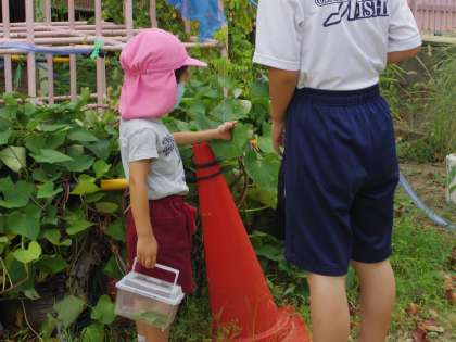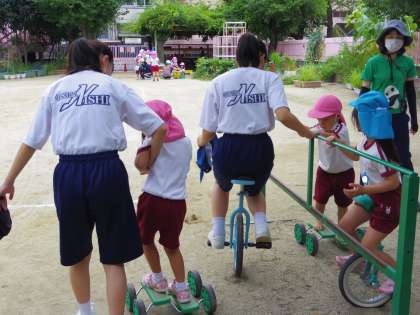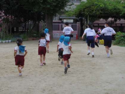 園児は、ちょっと大きいお兄さん、お姉さんと遊ぶことができて、とてもうれしそうでした。