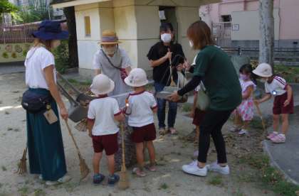 そら組の子どもたちとお家の方で、幼稚園前の公園の清掃をしました。