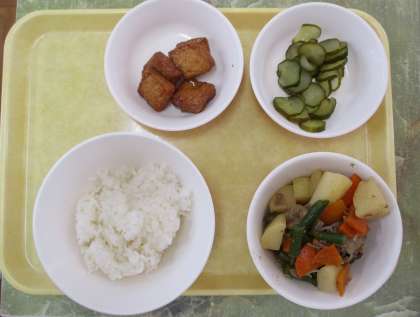 上 肉じゃが・あつあげのみそだれかけ・きゅうりのゆずの香あえ