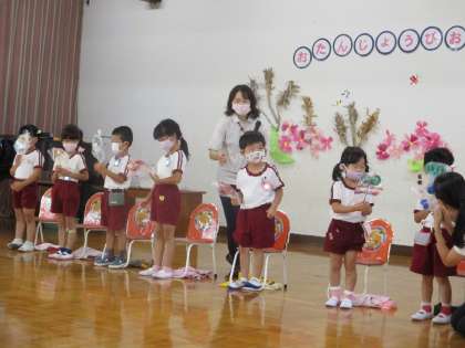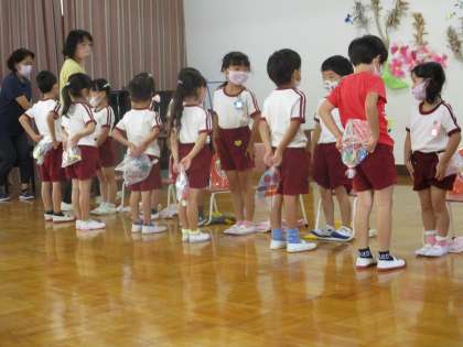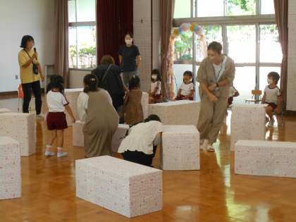 誕生会2 公開日 2022/09/20 更新日 2022/09/20 子どもたちの様子 そら組による手作りプレゼント、渡す前は、ちょっと隠してお楽しみ! もらったのは、いろいろな色の「トンボのめがね」でした。水色めがねで見てみたら…、赤色めがねで見てみたら…、どんな景色が見えたかな。 そのあとは、お家の方に箱に隠れている子どもたちを見つけてもらいました。 静かに上手に隠れている子どもたち。 「あれ?どこ??」 いいね(0)