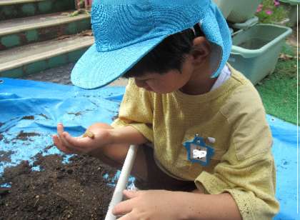 「カブトムシの幼虫や!」と、子どもたちは喜んでいますが、さて、大きくなったら何になるでしょうか?楽しみですね。
