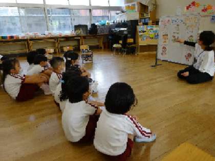 今回の保健指導で、幼稚園でどんなケガをしたことがあるのか聞いてみると、「ダンゴムシの時(ダンゴムシになって遊んでる時)にこけた」「友達とぶつかってこけた」などの答えが返ってきました。