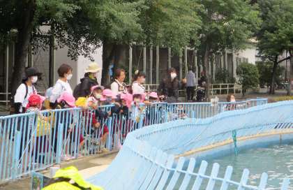 真似をしながら、水面に顔を出したり、もぐったりして泳ぎまわるアシカたちを、楽しみながら見ていました。