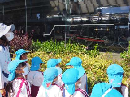 お礼を言って、消防署を出発して、帰り道にある、大きな機関車も見て帰りました。